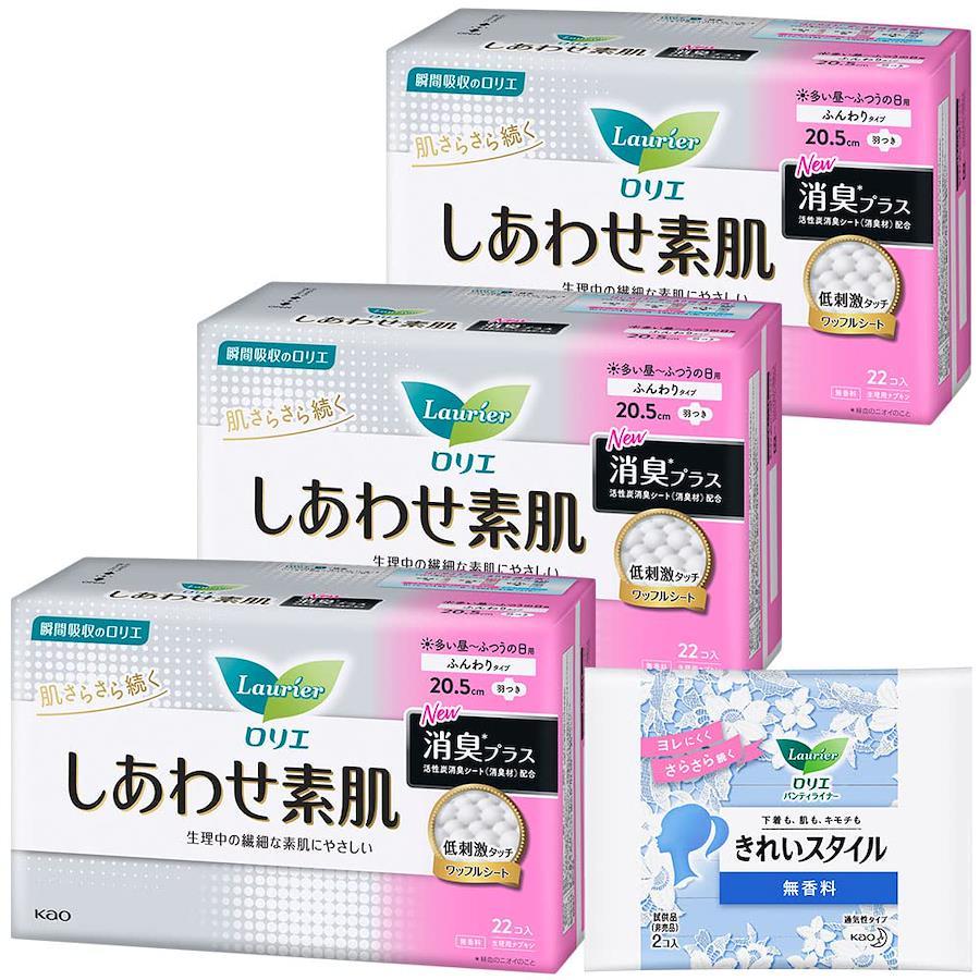 ●こだわりのふんわりやわらか仕立て(医薬部外品) 販売名(薬事販売名):デオドラントHL-a 薬事区分:医薬部外品 容量:22コ入× 3セット(66コ) 構成材料:表面材:ポリエチレン・ポリプロピレン・ポリエステル 色調:白、紫(青色404号を含む) 製造販売業者:花王株式会社