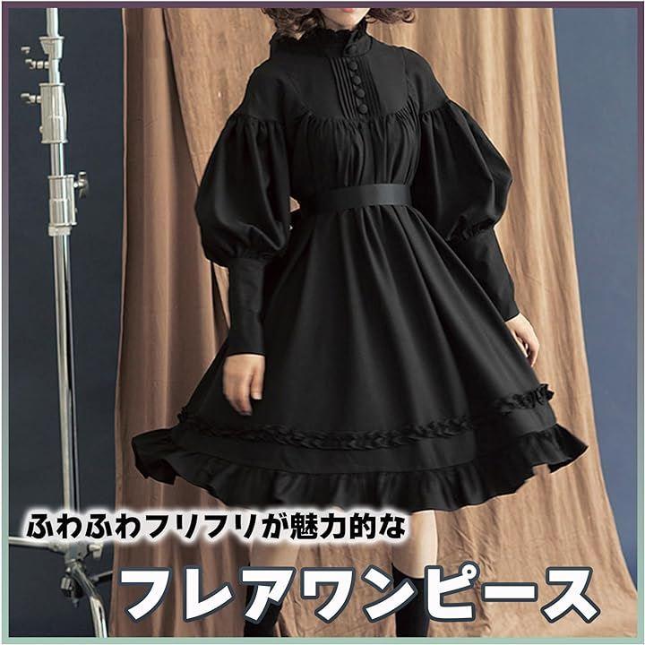 ゴスロリ系のAラインが特徴的な可愛い雰囲気のフレアワンピースです。