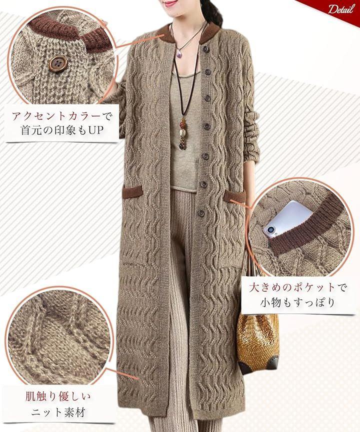 ベーシックなデザインで使い勝手の良いカーディガンは10,20,30,40,50,60代と幅広い年代の方にお楽しみいただけます。