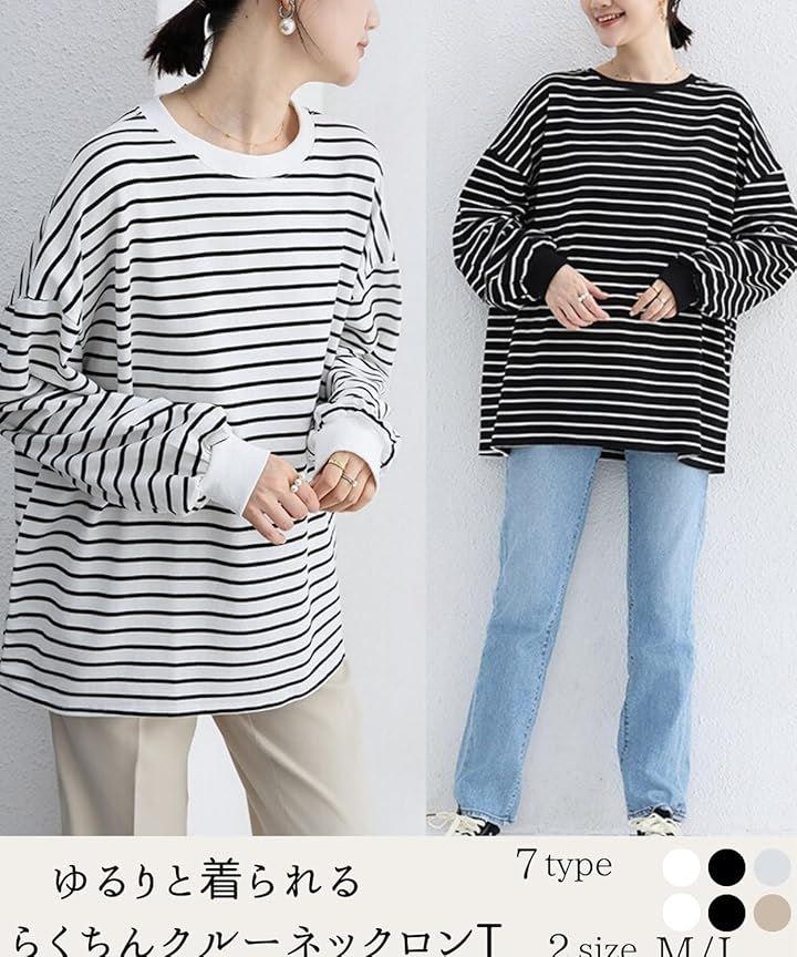 「素材」コットン30% ポリエステル65% スパンデックス5%「カラー」ホワイトボーダー、ブラックボーダー、グレー、ホワイト、ブラック、コーヒー、アプリコット「サイズ(cm)」M 着丈68/肩幅61/バスト62/裾幅66/袖丈51/袖幅10 L 着丈70/肩幅64/バスト67/裾幅68/袖丈52/袖幅10