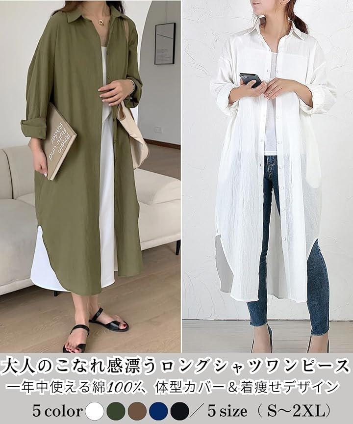 「綿100%の心地良いシャツブラウス」コットンワンピース(シャツ)ならではの通気性・吸水性で、季節の変わり目も快適に過ごせます。