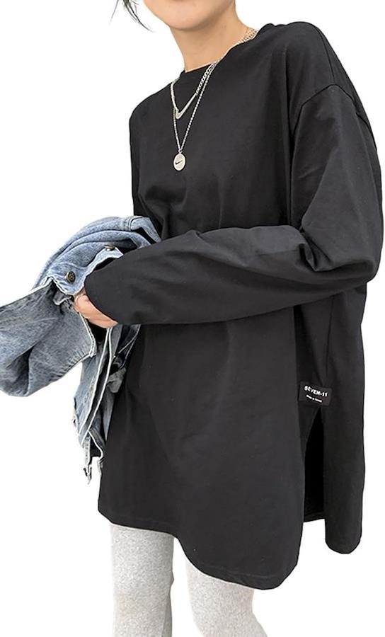 近年トレンドのビッグシルエットデザインの長袖Tシャツです*シンプルなデザインでどんなスタイルとも相性抜群。