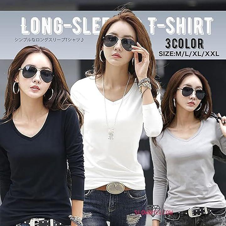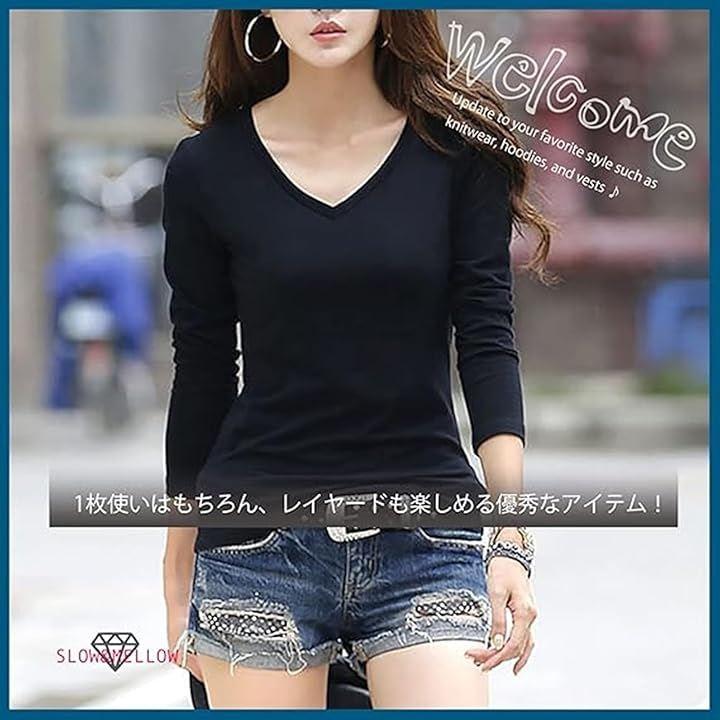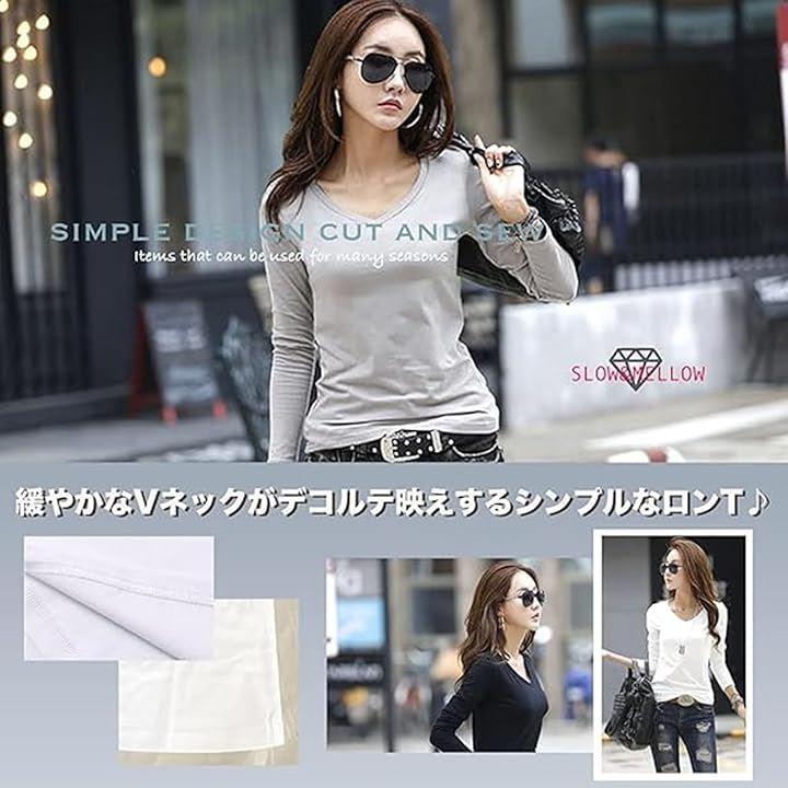 緩やかなVネックがデコルテ映えするシンプルなロングスリーブTシャツです。