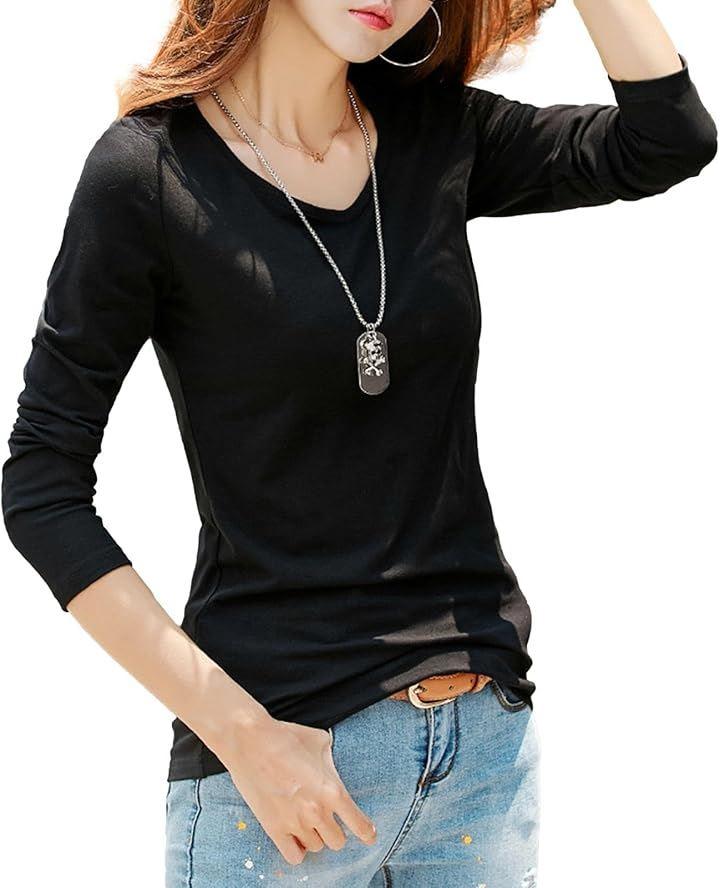 Women's Long Sleeve T-Shirt, Simple, Solid Color, Casual, Long Tee, V-Neck