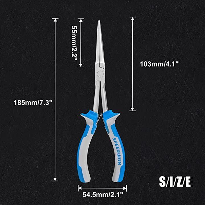 Long reach, finely tapered, mini pliers, perfect for precision work and tight spaces that are hard to reach, long size, no grooves, long tip, compact, lightweight, spring-loaded, car repair, professional, hobby, handicraft, craft, accessory, tool, 185mm