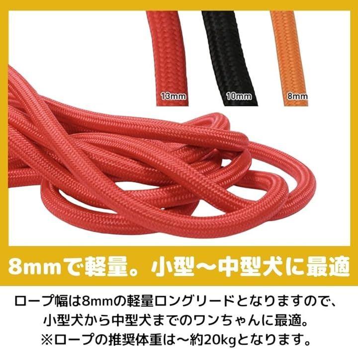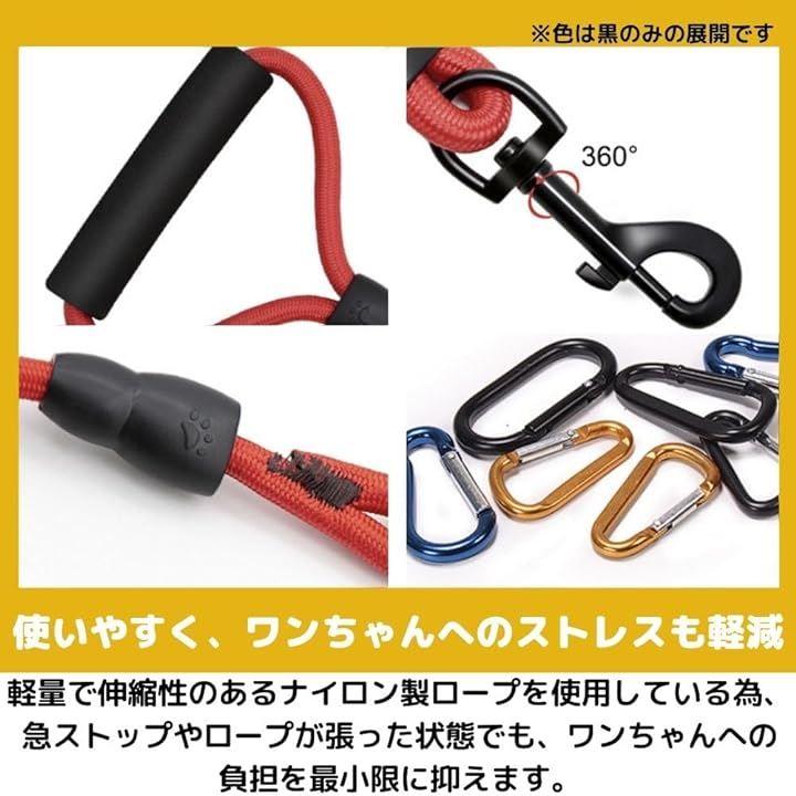 長さに合わせた軽量で伸縮性のあるナイロン製ロープを使用しているため、急ストップやロープが張った状態でも、ワンちゃんへの負担を最小限に抑えます。
