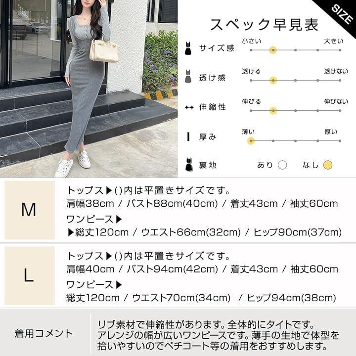 「M」トップス▶ 肩幅38cm / バスト88cm(40cm) / 着丈43cm / 袖丈60cm ワンピース▶総丈120cm ウエスト66cm(32cm) ヒップ90cm(37cm)