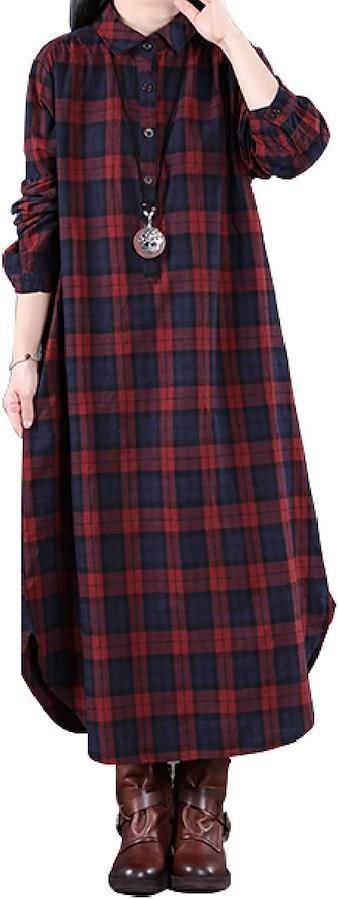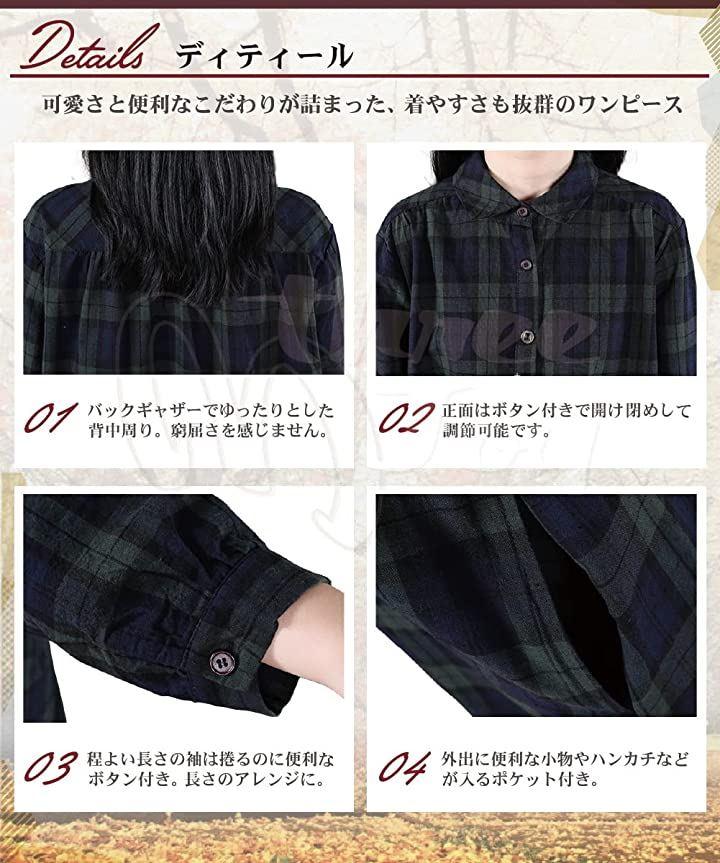 「デザイン」大人っぽいチェック柄ロングワンピース。