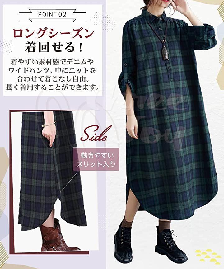 「コーディネート」カーディガンやコートなど羽織たり、インナーを合わせたりと重ね着しても決まるロングワンピース。