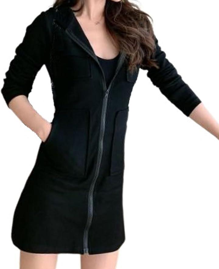 ロング丈で羽織としてもワンピースとしても着られる前ジップ フーディー パーカー。