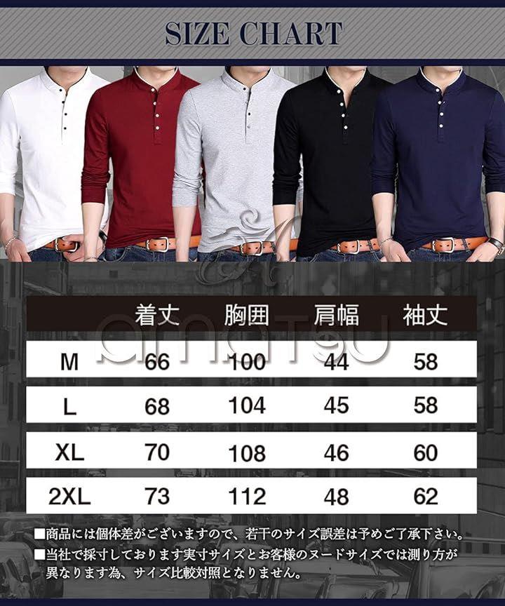 カラーはブラック・ホワイト・ネイビー・グレー・ワインレッドの5色、サイズはM~2XLまで幅広くご用意しております。