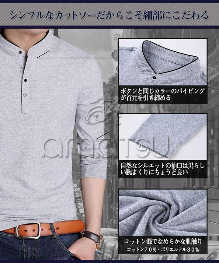 「ディティール」ボタンと同じカラーのパイピングが首元を引き締めスマートに・自然なシルエットの袖口は男らしい腕まくりにちょうど感じに・コットン混でなめらかな肌触りになっています。