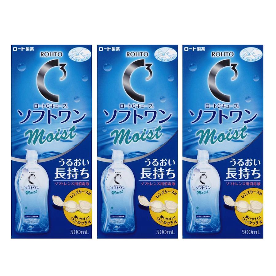 Rohto Contact Care C3 Soft One Moist 500mL x 3-Pack Contact Lens Disinfectant with Lens Case (Quasi-drug)