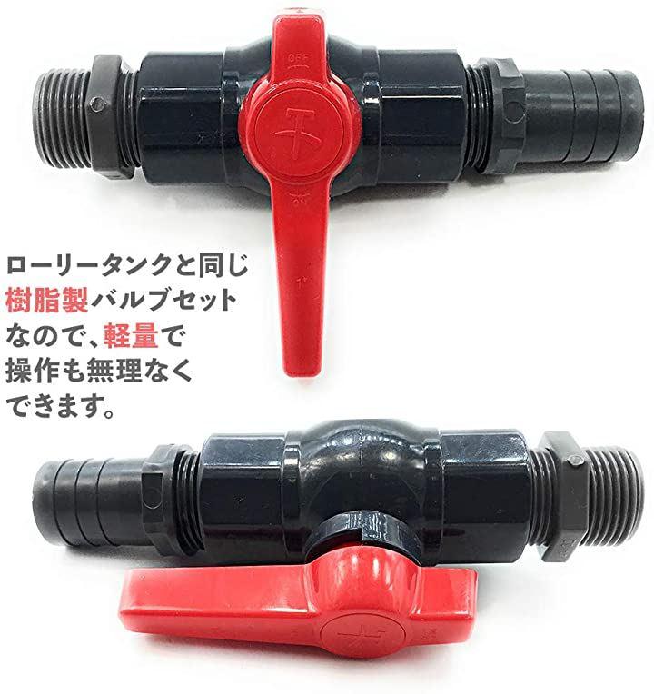 ・ローリータンクと同じ樹脂製バルブセットなので、軽量で操作も無理なくできます。