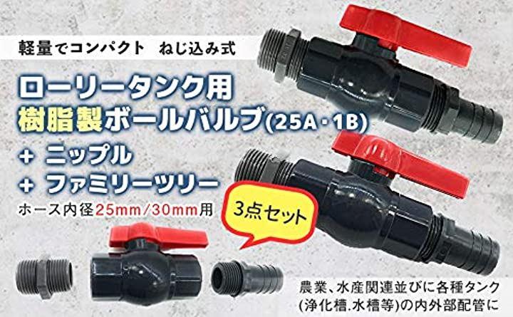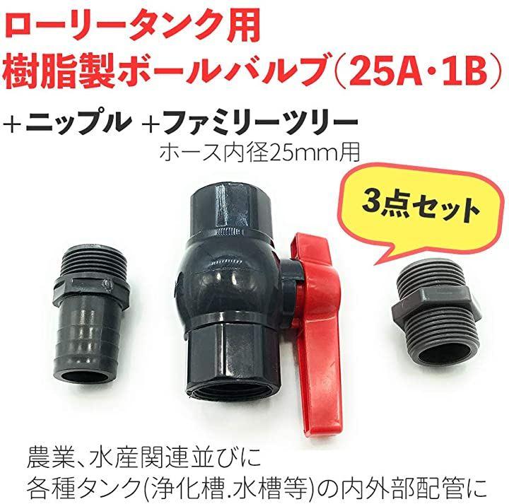 ・ローリータンク用 樹脂製ボールバルブ(25A・1B) &ニップル&ファミリーツリー の3点セットです。