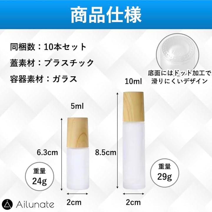 Glass Roll-On Bottles, Light-Proof, Refillable, Storage Containers for Perfumes, Aromas, Cosmetics, and Essential Oils, 10 Bottles