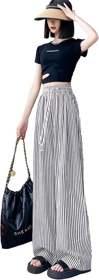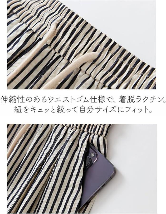 ストライプデザインが足を細く見せスタイルアップが期待出来ます。