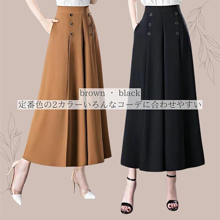ワイドシルエットが下半身の気になる部分を自然にカバーしながら、上品な大人の女性らしさを演出。