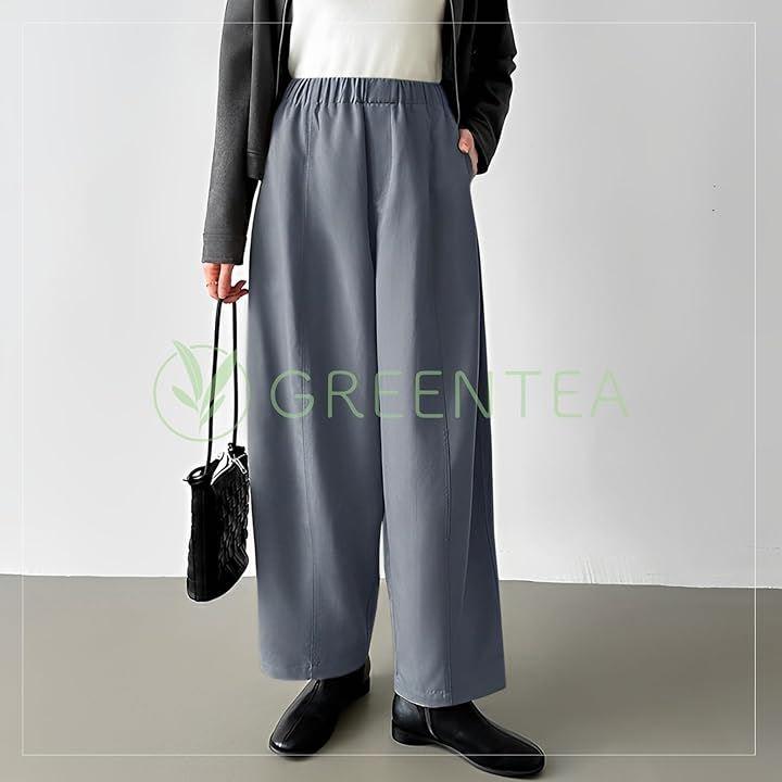 すっきりとした無地ボトムスは様々なトップスにも合わせることができます。
