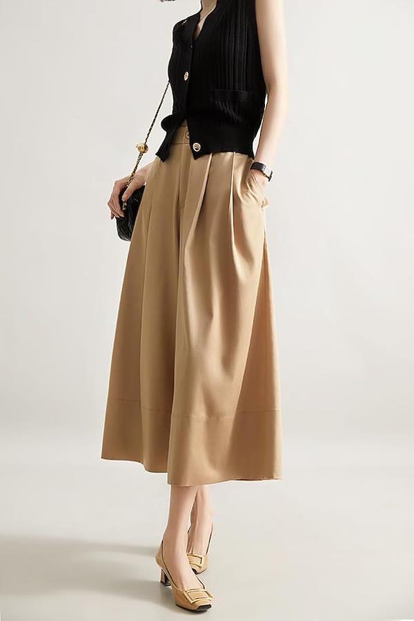 動くたびに優雅なシルエットが目を引くワイドボトムス。