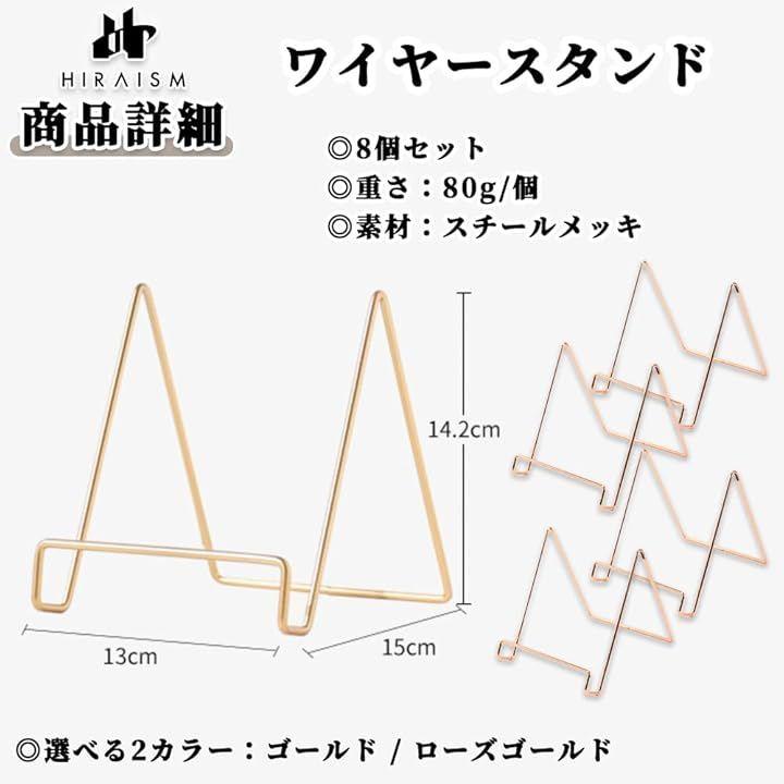 「商品内容」金属製 ワイヤースタンド:8個セット カラー:ゴールド 素材:スチールメッキ サイズ:幅13cm 奥行15cm 高さ14.2cm 重量:80g / 個
