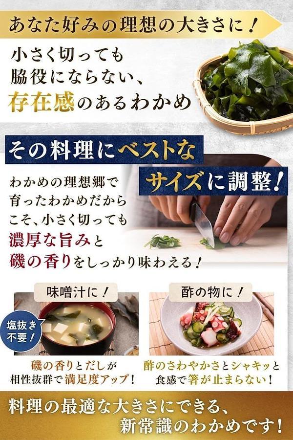 「料理の主役になる乾燥わかめ」大きめに切れば刺身やしゃぶしゃぶで”生風味”を、小さめに切ることで味噌汁や酢の物がワンランク上がる、どんな料理にも相性抜群なんです。