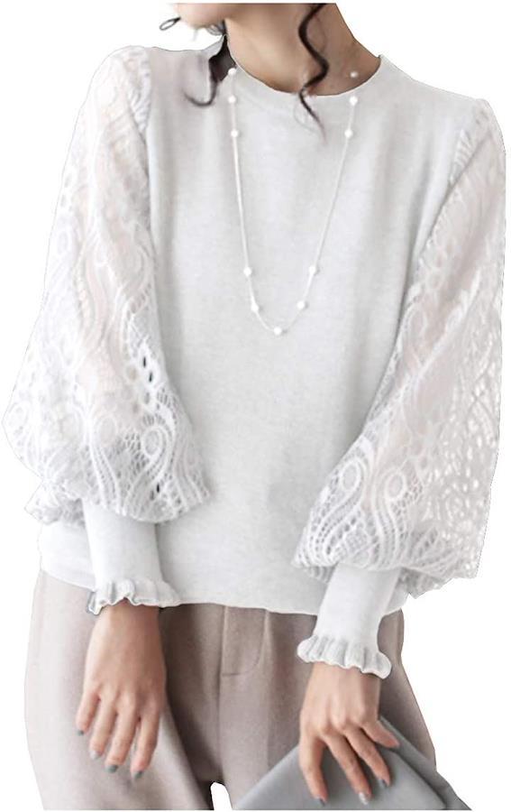 ぽわんと広がるレースのパフスリーブが適度な透け感で品よく肌見せしてくれます。