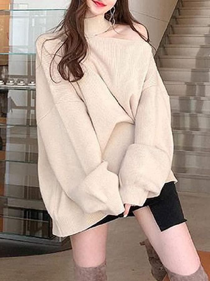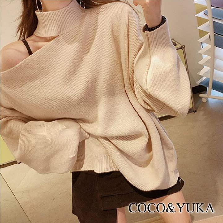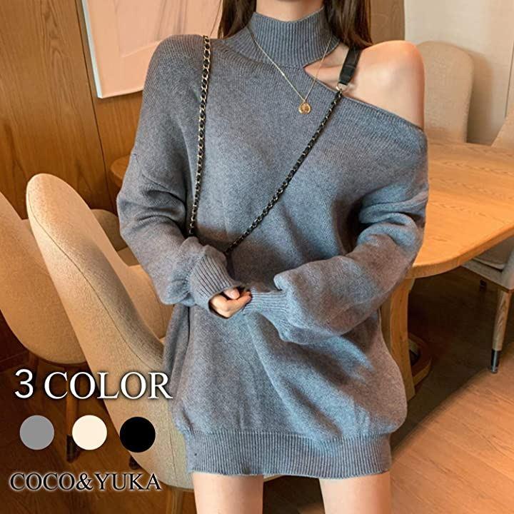 ワンショルダーの肩出しがかわいいニットトップスです。