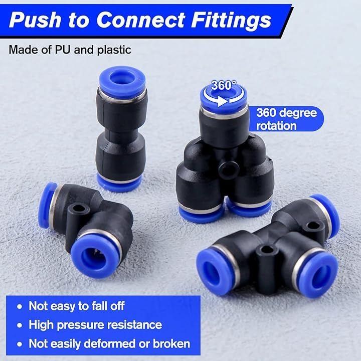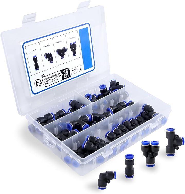 この包括的なセットには、10個の分岐継手、10個のエルボ継手、10個のT字継手、10個のストレート継手が含まれており、複雑なエアホース構成を簡単に作成できます。