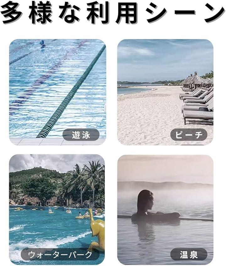 「多様なシーンで活躍する多用途アイテム」ビーチやプール、リゾートだけではなく、スポーツやフィットネス、ヨガ、サイクリングなど、さまざまなシーンで活躍します。