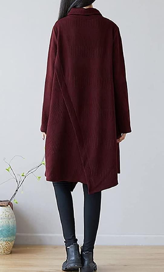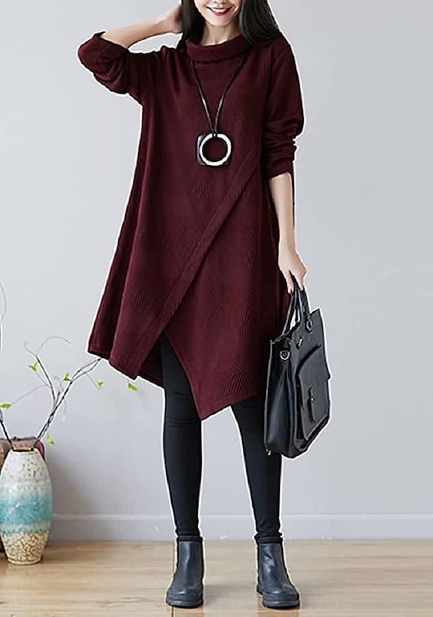 長時間着ていても締め付け感の無い、ストレスフリーなゆったりサイズで、妊婦さんにも優しく、大人可愛いマタニティーウエアやママコーデとしても活用できますね。 柔らかい触り心地で着脱も楽ちんなタートルネックワンピースは、様々なシーンで活躍すること間違いなし。トレンドのオーバーサイズデザインが女性らしいシルエットを演出してくれます。アシメデザインの裾は、よりオシャレに演出し、脚長&美脚効果も期待できる優れモノ。 レギンスやスキニーパンツ、カラータイツを合わせて1枚簡単トレンドお出かけコーデが完成します。 忙しい朝の時短コーデにも力を発揮してくれますよ。