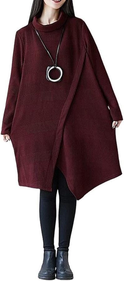 個性的な印象を与えるアシンメトリーデザインのハイネックニットワンピースです。