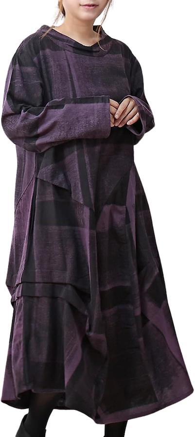 「個性が光るおしゃれワンピース」◉秋 冬のトレンドを取り入れたロングスタイルの長袖 ワンピースは、和風の和柄デザインとアジアン・エスニックテイストを融合させた個性的な雰囲気に仕上がりました。