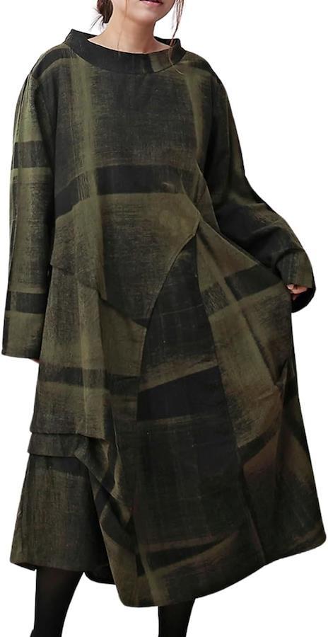 「個性が光るおしゃれワンピース」◉秋 冬のトレンドを取り入れたロングスタイルの長袖 ワンピースは、和風の和柄デザインとアジアン・エスニックテイストを融合させた個性的な雰囲気に仕上がりました。