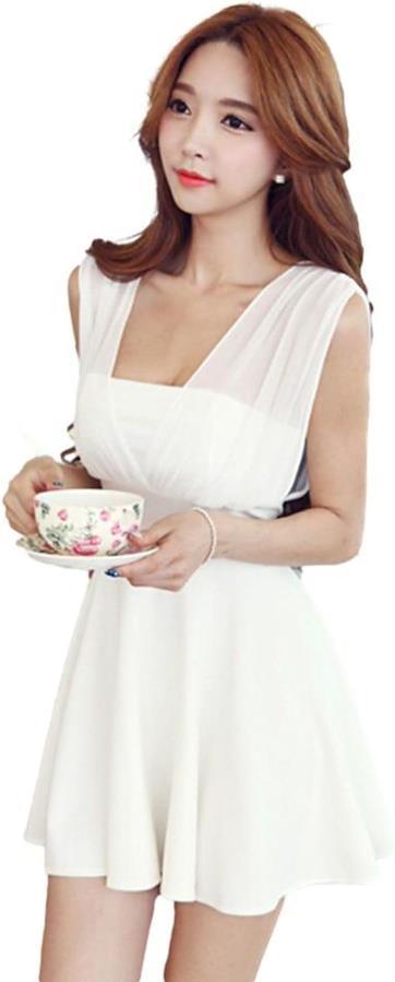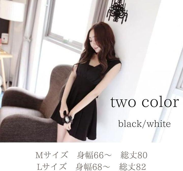 デコルテ綺麗にみせるノースリーブのミニ丈ワンピース。ハイウエストで足長効果抜群です。