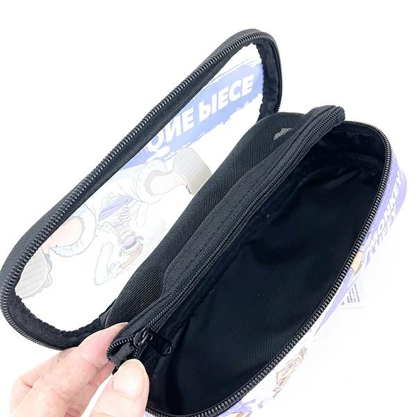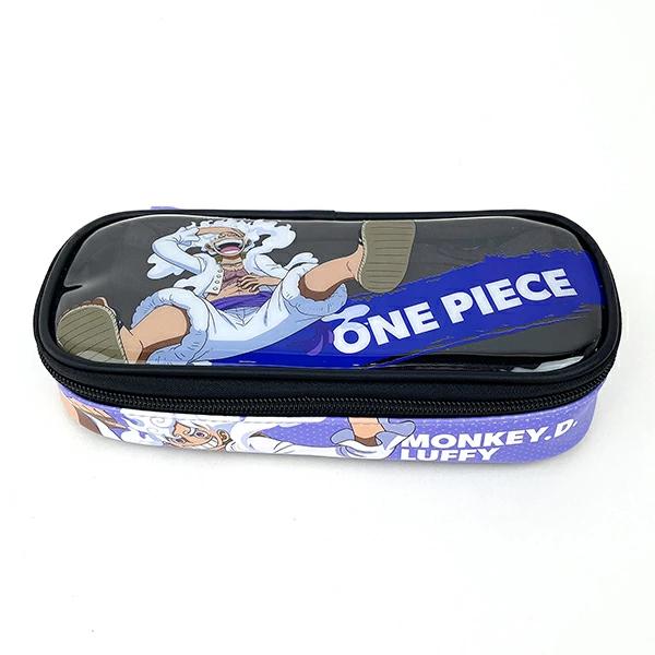 大人気のルフィーギア5のイラストがカッコイイペンポーチです。クールな印象のカラーがカッコよさを引き立てます。クリアな天板がフルオープンするので中身を出しやすい♪チャック付きポケットもあり、使いやすいデザインです♪