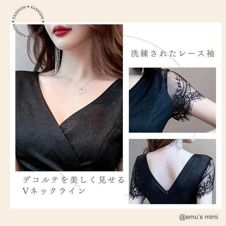 Vネックラインがデコルテを美しく見せ、エレガントでありながらもセクシーな印象を与えます。