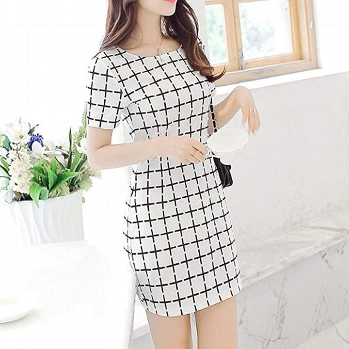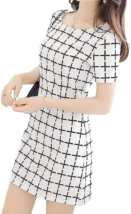 Beaumensモノトーングラフチェック柄ワンピースミニショート丈半袖春夏レディースファッション