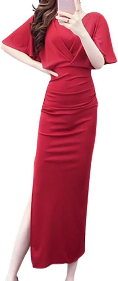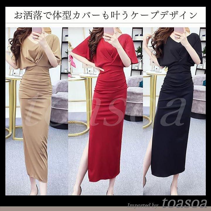 ふんわりとしたトップのボリュームとタイトなボトムのバランスが絶妙でセクシーなロング 丈 マキシワンピース ドレス。