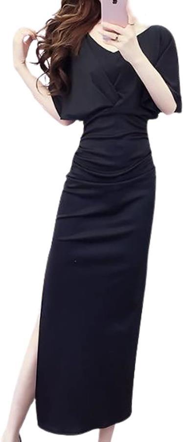 ふんわりとしたトップのボリュームとタイトなボトムのバランスが絶妙でセクシーなロング 丈 マキシワンピース ドレス。