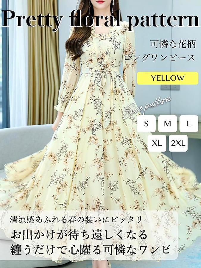 柔らかく流れるシフォンが、春風にのって優雅に揺れるこのワンピースは、すべての動きを美しく映し出します。
