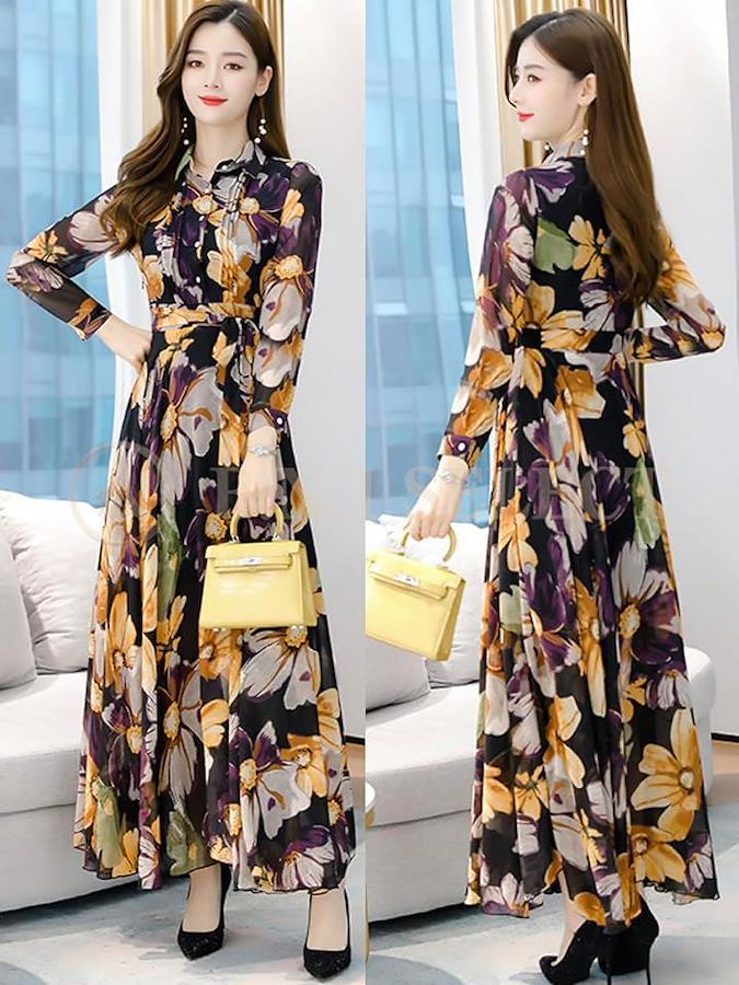 花柄のロングワンピースでエレガンスを纏いましょう。