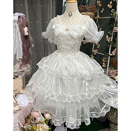 メイン素材: ポリエステル 全体に透け感のある白い布を用いて、フリルがたくさん施されます。前に編上げ紐が付いて、スカート部分も飾られて、可愛いイメージのあるワンピース。 きれいなレースブレードが飾られます。ボリューム感のあるワンピースで、高めなウエストの切り替えで脚長効果が出ます。 普段のおしゃれにはもちろん、女装、コスプレ、ガーリー系、森ガール系、暗黒系、原宿系、学園祭、文化祭、忘年会、イベント、記念日、演劇、撮影、舞台、ハロウィン、クリスマスなども、さまざまな場合で活躍!SSUPTEMBERⅡでは、ロリータ服、メイド服、ハロウィンコスチューム 、JK制服など、さまざまなコスプレ衣装が多く扱っております♪ 【サイズ】M バスト92 ウエスト64-72 ワンピース丈91 L バスト98 ウエスト70-78 ワンピース丈93 ※注意:お品物の色合いは、写真撮影とパソコン画面表示等の環境の違いにより、若干異なる場合がございますので予めご了承下さい。