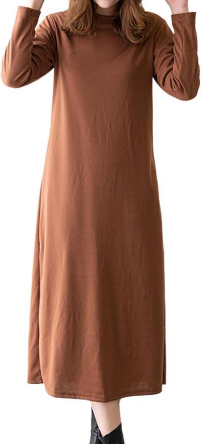 Women's long dresses with long sleeves. This relaxed fit, maxi-length dress features a simple, A-line design, a solid color, and a midi-length shirt. It's cute, stylish, and flattering.