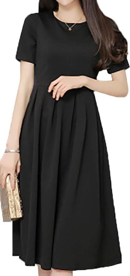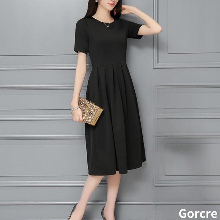 「飽きのこないかたち」優しい印象で飽きのこない、「半袖」タイプのクルーネックフォーマルワンピースです。