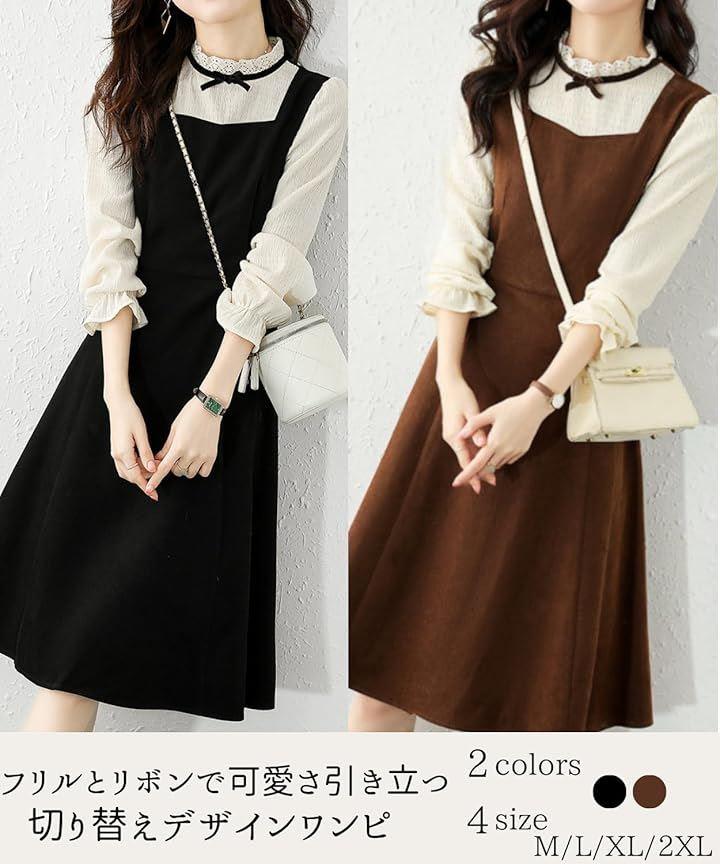 ドッキングワンピースとニットワンピの組み合わせで、季節を問わず楽しめます。
