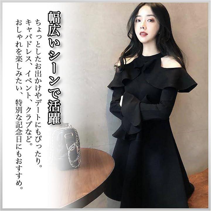 セクシーなオープンショルダーが際立つ、シックなブラックワンピース。