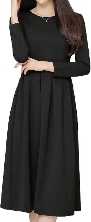 「飽きのこないかたち」優しい印象で飽きのこない、「長袖」タイプのクルーネックフォーマルワンピースです。
