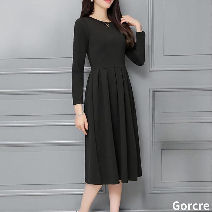 「飽きのこないかたち」優しい印象で飽きのこない、「長袖」タイプのクルーネックフォーマルワンピースです。