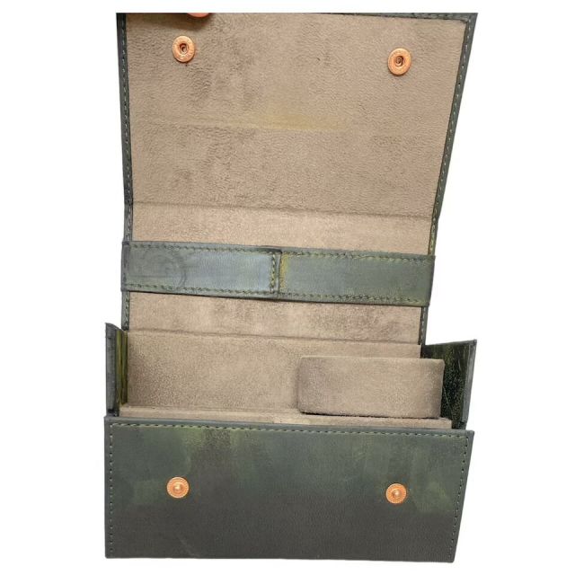 状態・・・外箱に薄汚れ等があります。内箱外観は良好な状態ですが、時計収納部や枕にはがれ等があります。現状べたつきなどはなく、枕収納の際などにスレてできた傷やはがれ等です。内箱株の収納に汚れがあり、取り出し式の収納ケースに変色があります。